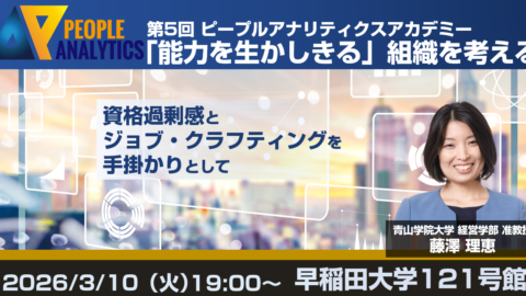 本イベントへのお申し込みについては弊協会会員限定メールマガジンにてご案内しております。 新規のご入会はこちらからお申し込みいただけます。https://peopleanalytics.or.jp/join/ 「ピープルアナリティクスアカデミー」...