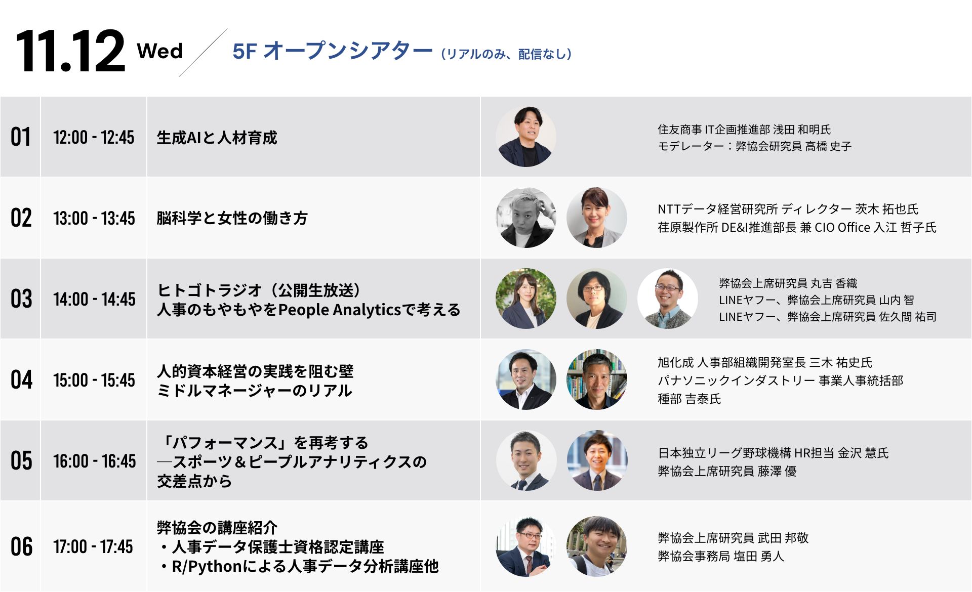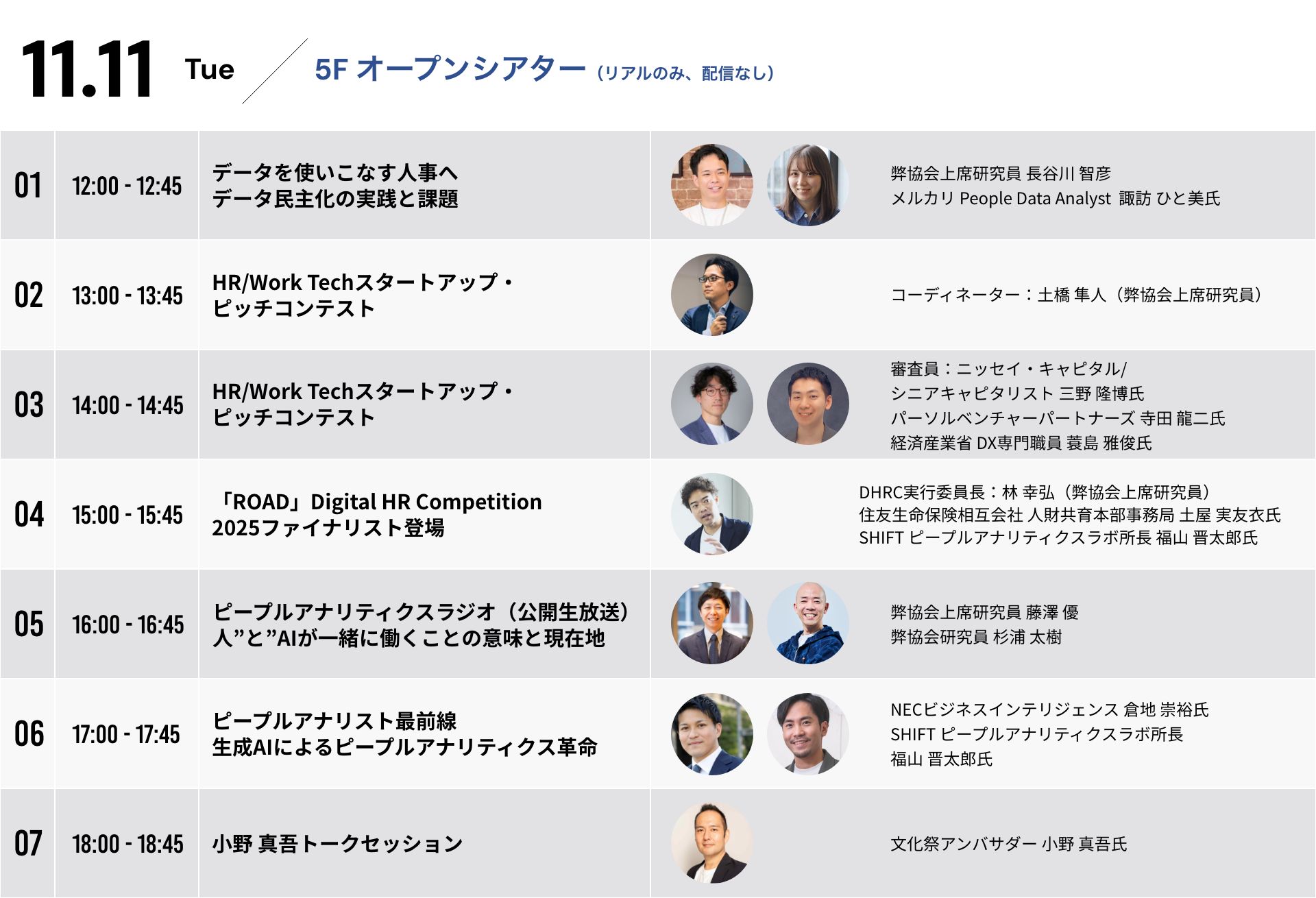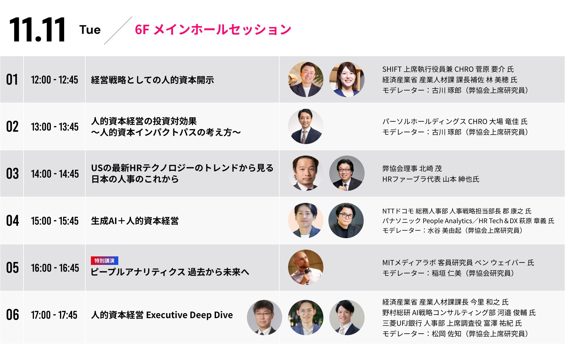 人事AI DX、人的資本経営、経営戦略、ピープルアナリティクス等をテーマにした様々なセッションを企業経営者、CHRO、スペシャリスト他、多彩な顔ぶれで議論します。