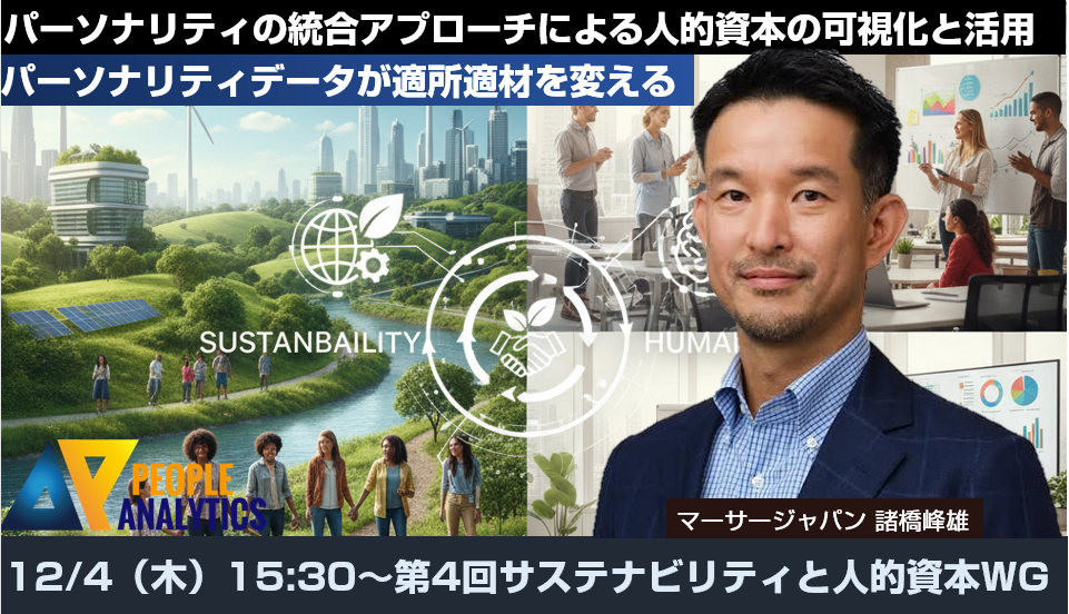 12/4(木)第4回サステナビリティと人的資本WG:「パーソナリティデータが適所適材を変える ― パーソナリティの統合アプローチによる人的資本の可視化と活用」