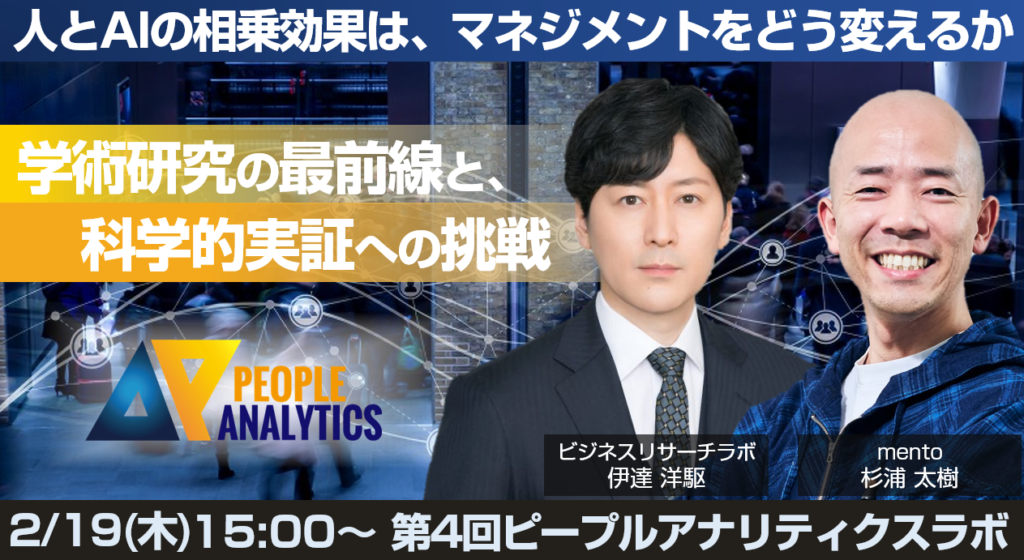 2/19(木) 第4回ピープルアナリティクスラボ「人とAIの相乗効果:実務・プロダクトの視点」と「学術・研究知見の視点」